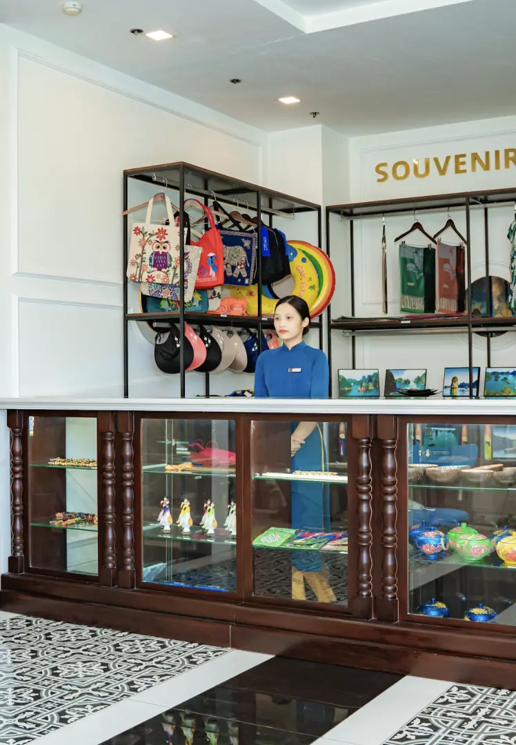 Không gian trưng bày các đồ lưu niệm mang nét đặc trưng của vùng biển Hạ Long với đa dạng các sản phẩm từ tranh, ảnh, mũ, áo và một số sản phẩm khác. Tại đây, quý khách hàng có rất nhiều sự lựa chọn để mua quà về cho người thân và gia đình. Xem thêm